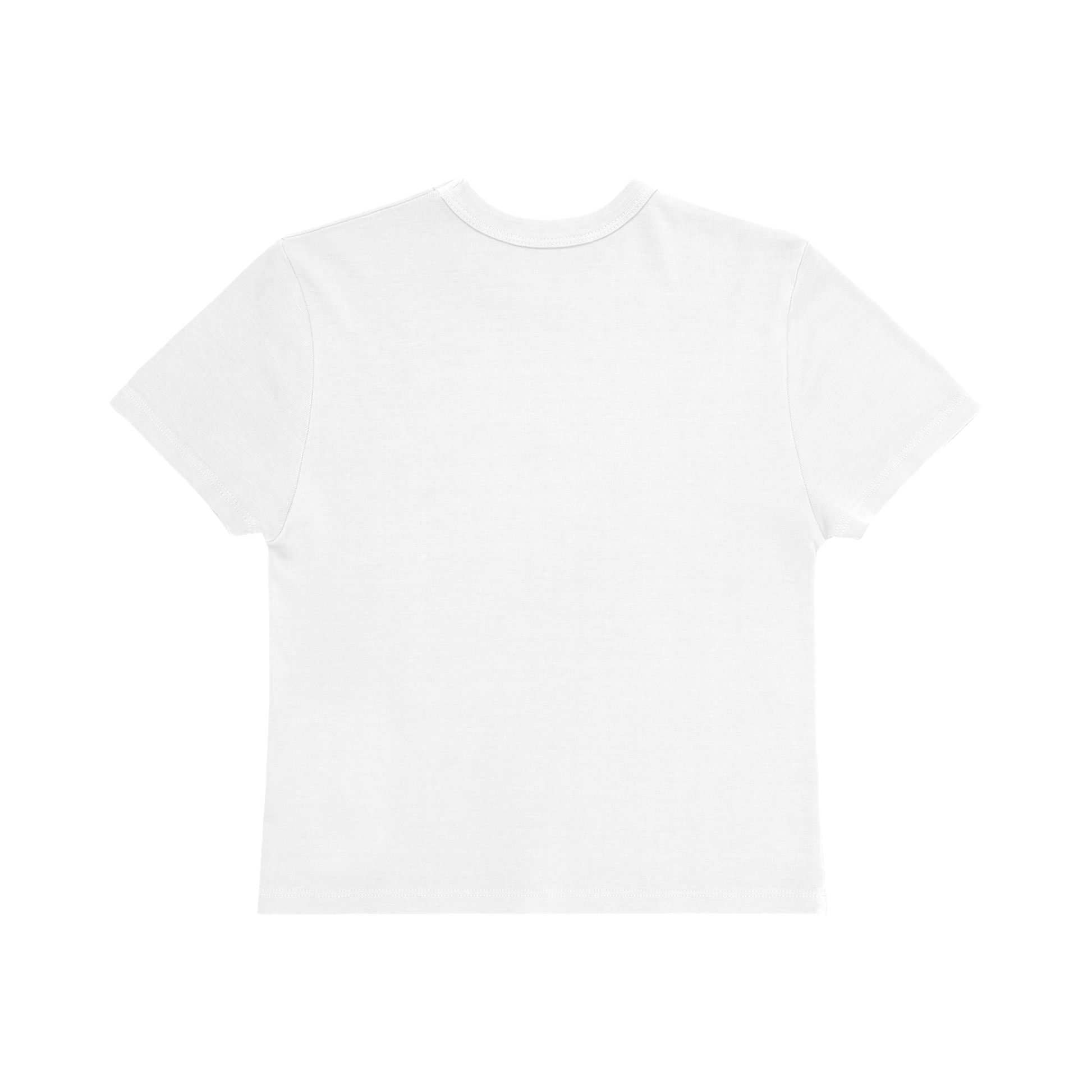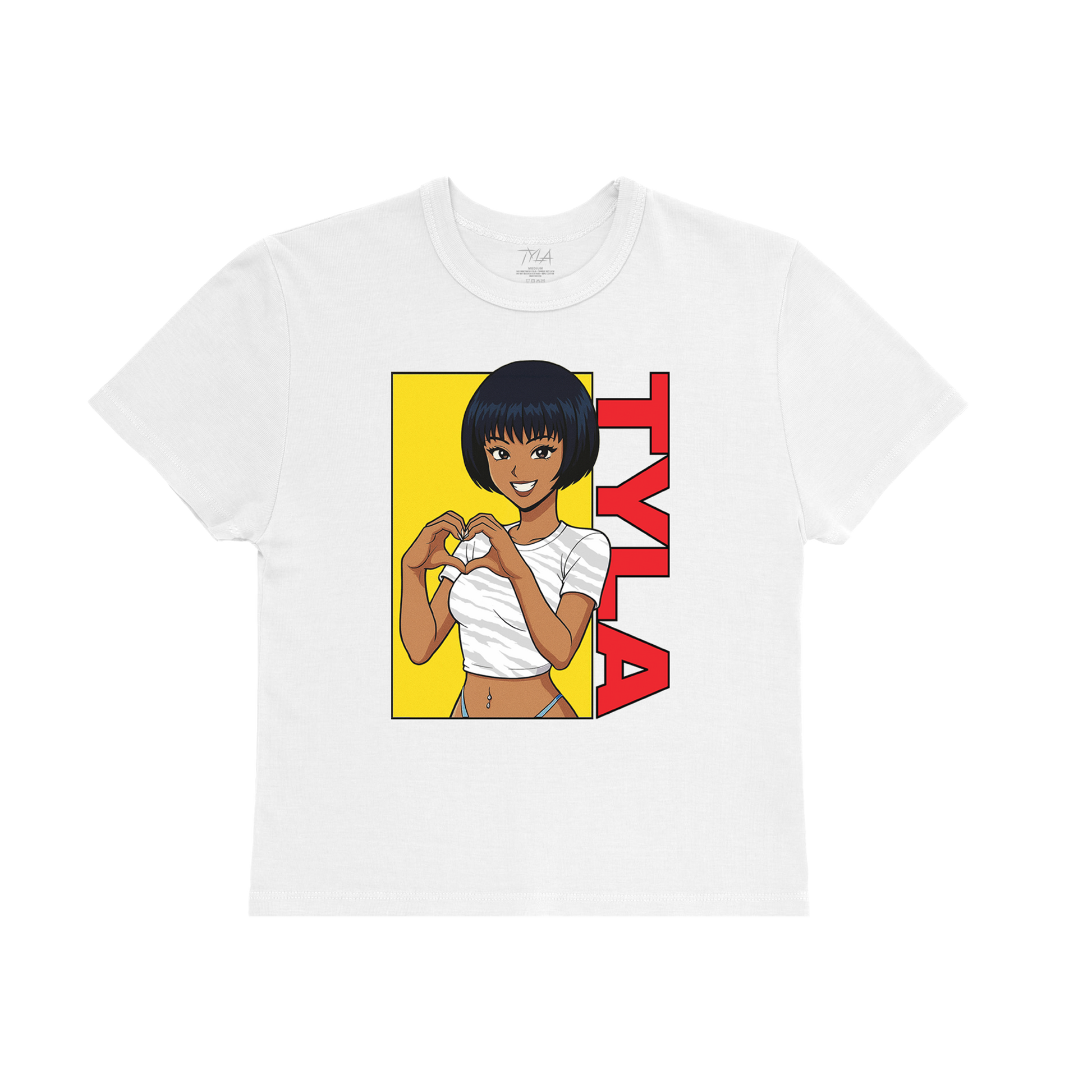 White baby tee featuring Tyla anime graphic printed on the front.